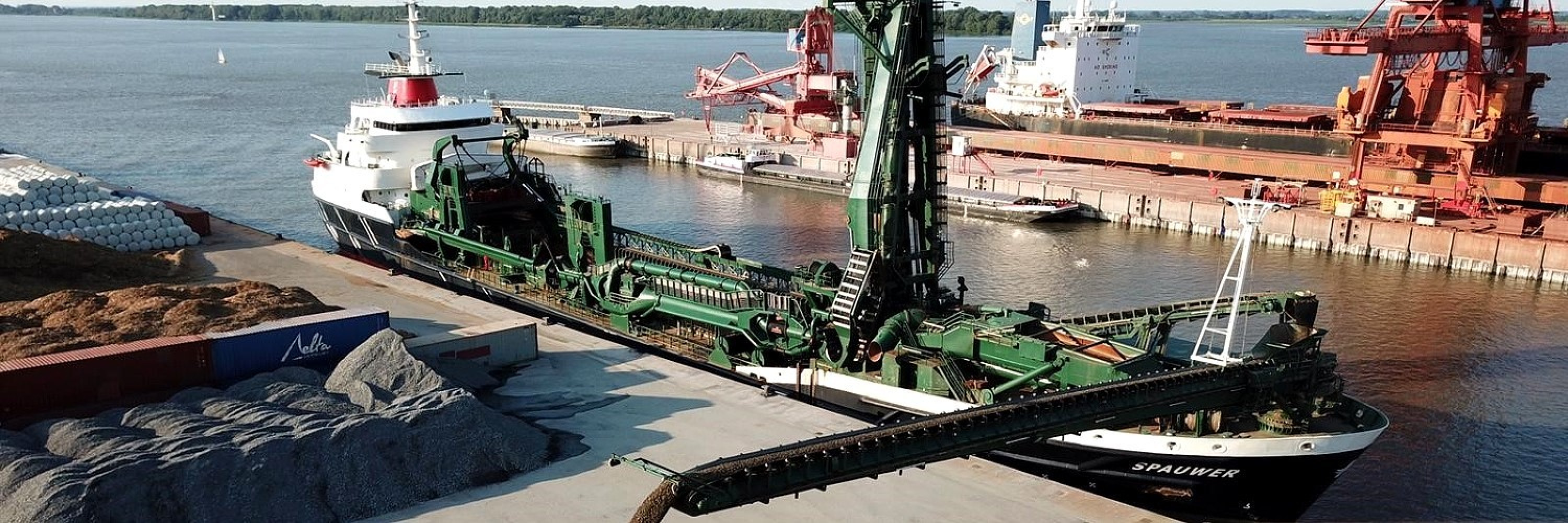Das Unternehmen kann in eigener Regie die gesamte Transportkette, vom Abbau auf dem Meeresboden bis hin zum Löschen am Kai, im Namen und auf Rechnung seiner Auftraggeber effizient und adäquat ausführen. Ab Station Cuxhaven (Hansakai) stehen alle Materialien auch frei Schiff (FOB) zur Verfügung.
